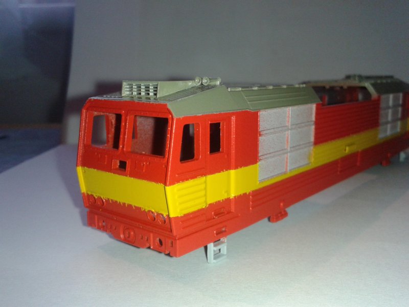 Odstrojený pojezd jsem nastříkal nejprve barvou základní šedou a poté odstínem odpovídajícím danému stroji, protože na BD 180 DB je černý a to se mi příiš nehodí ...